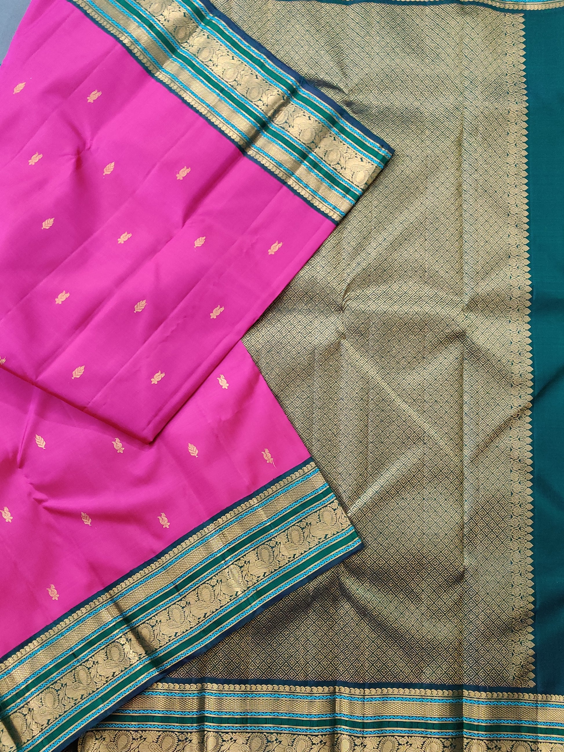 Rani Pink Colour Kanchivaram Silk Saree With Small Peacock Zari Butta All Over Code : KA0329