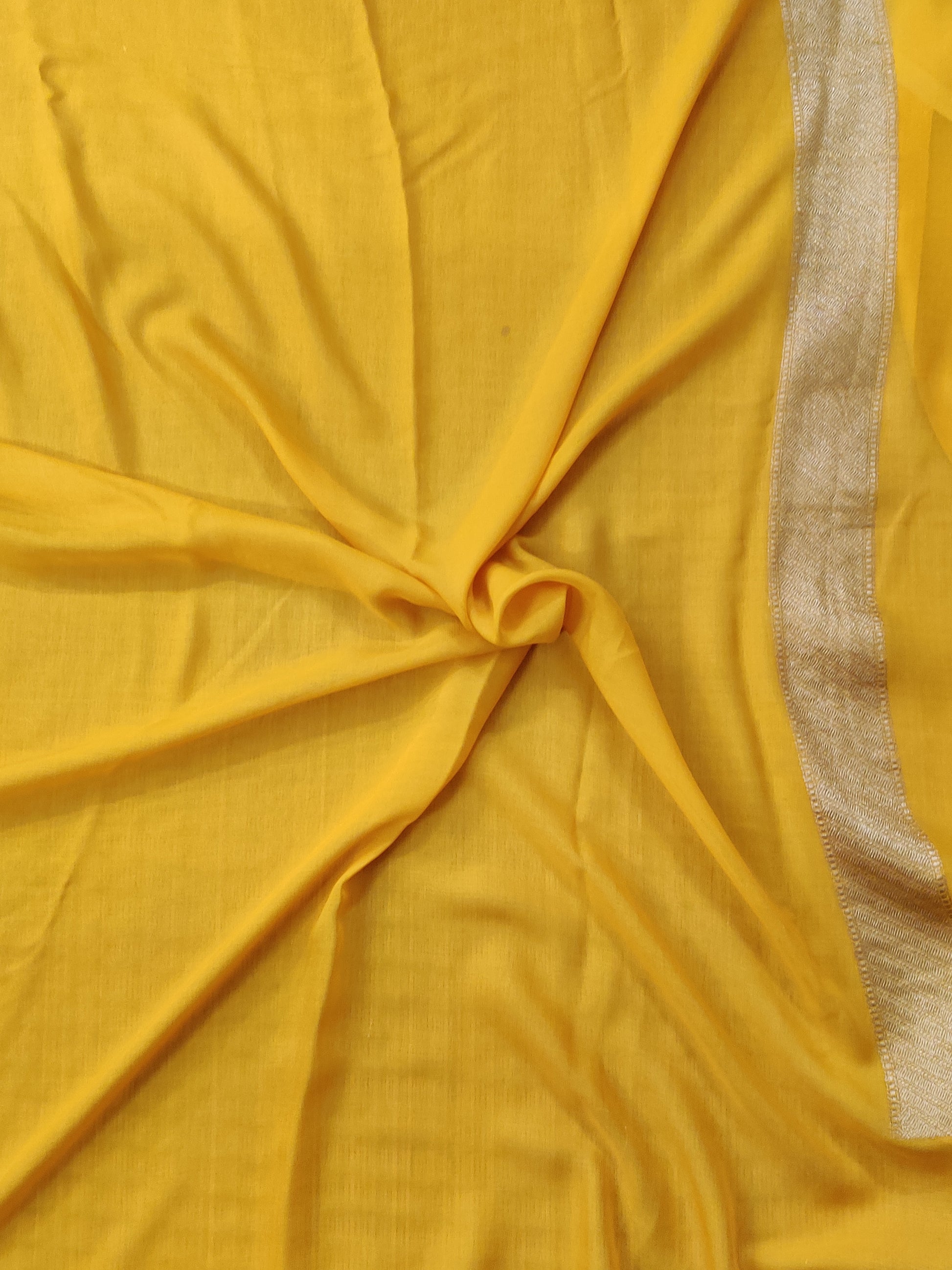 Elevate your ethnic wardrobe with this stunning yellow georgette saree, featuring an all-over digital print that brings contemporary flair to traditional elegance. The saree is adorned with a luxurious zari border and matching zari pallu, adding a touch of opulence and sophistication. Crafted from lightweight georgette fabric, it offers exceptional comfort and graceful draping for all-day wear. Paired with a coordinating self-colour plain blouse, this ensemble is ready to wear for festive occasions, celebrations, or formal gatherings. The intricate digital print showcases meticulous craftsmanship, while the zari embellishments elevate the overall aesthetic. Perfect for those who appreciate refined traditional wear with modern design sensibilities.
