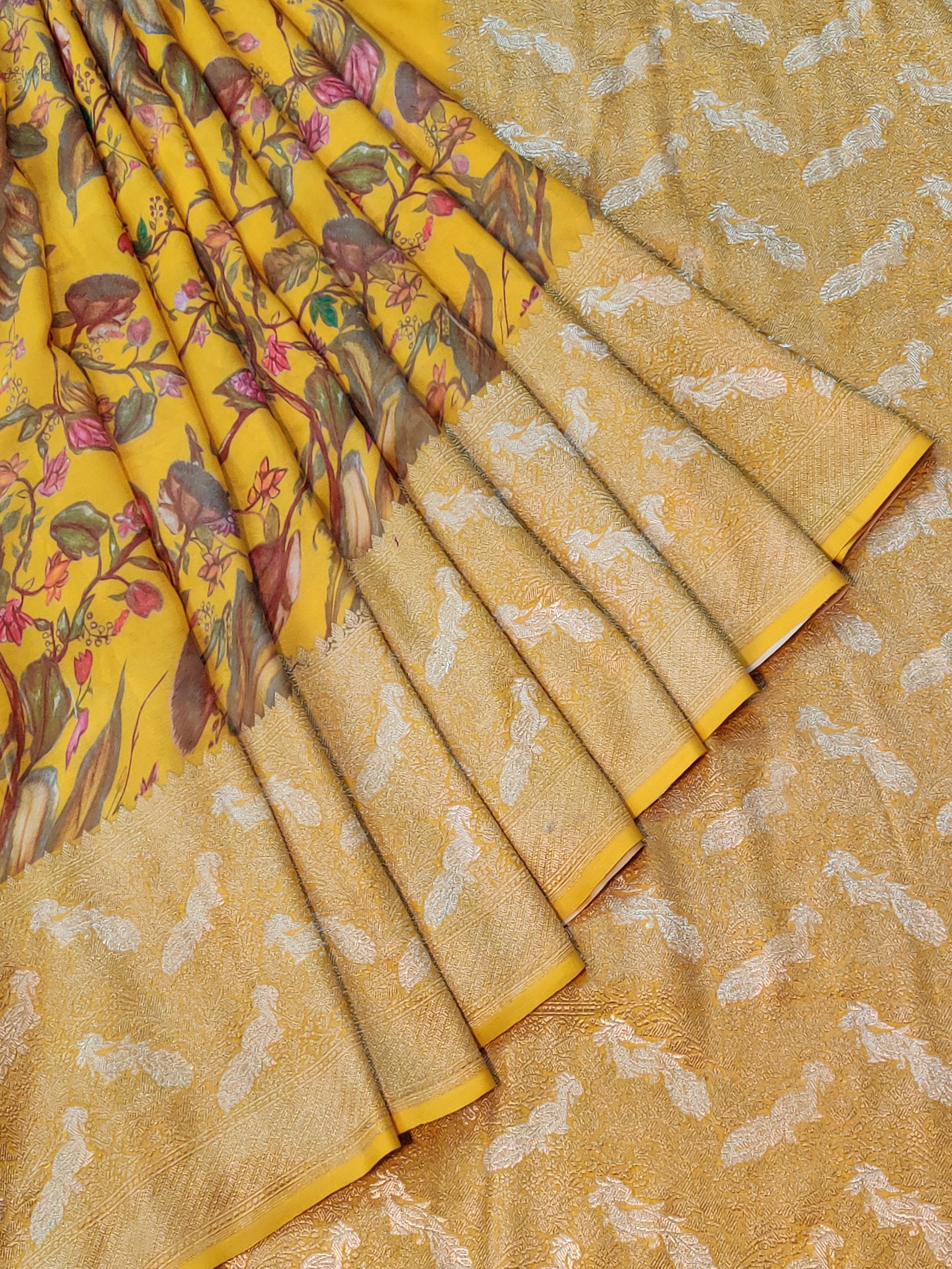 Yellow Colour Georgette Saree With Digital Print All Over Code : VB0418