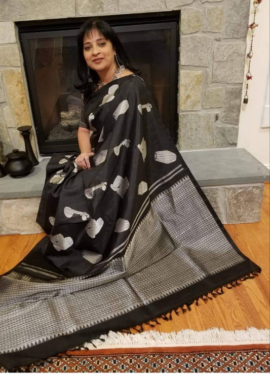 Grey Colour Semi Banarasi Saree With Batik Print All Over Code : VB0346