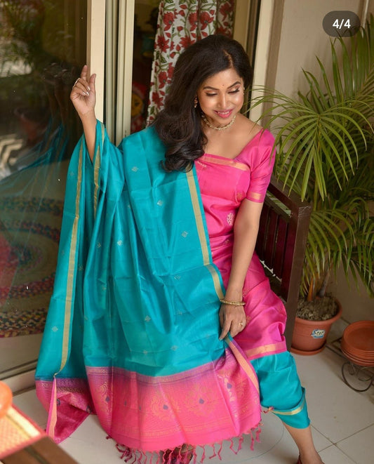 Baby Pink Colour Kanchivaram Silk Saree With Zari Butta All Over Code : KA0304