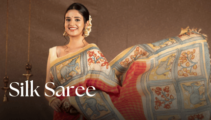 Cream Colour Borderless Kanchivaram Silk Saree With Digital Print All Over Code : KA093